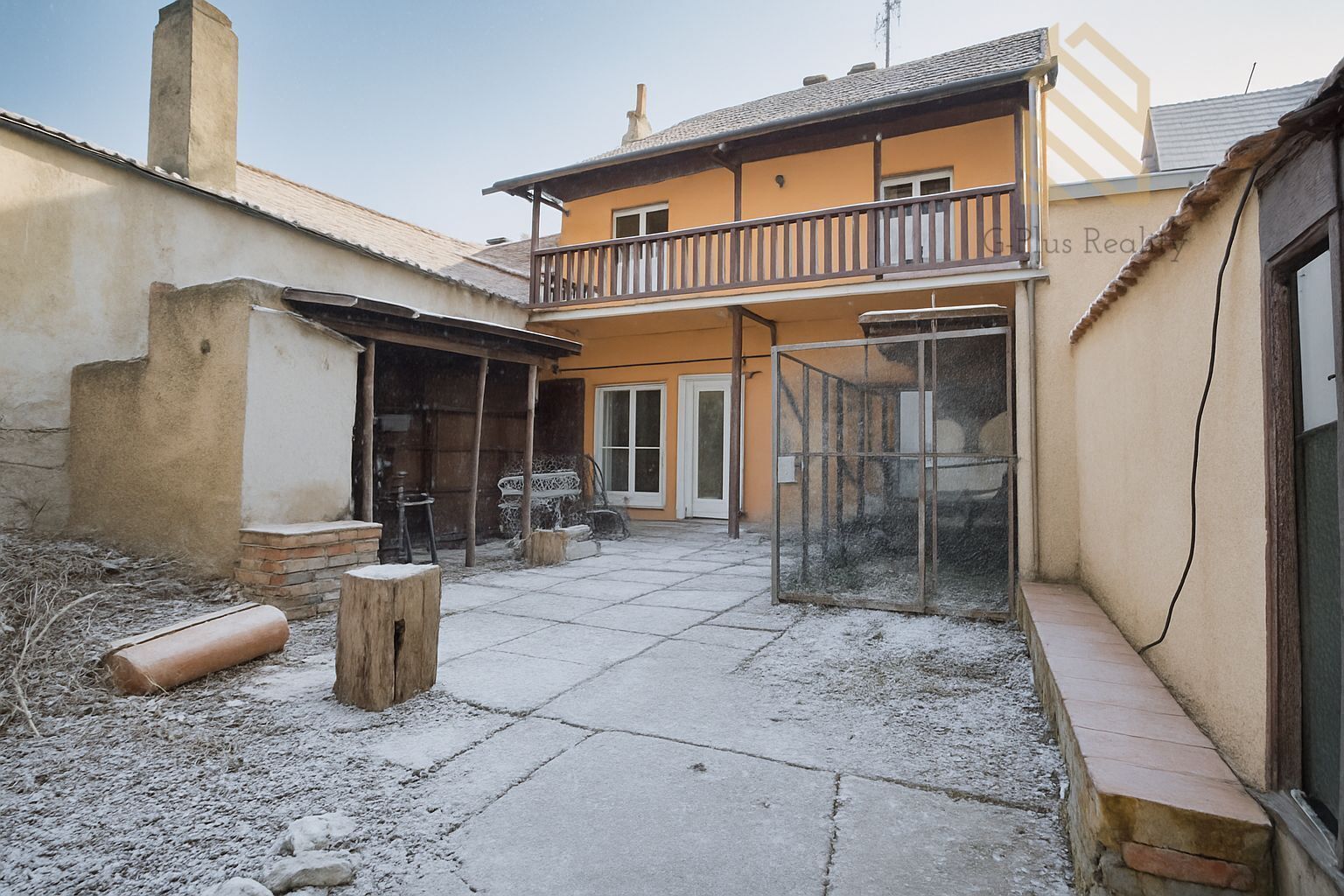 Součástí pozemku je také menší domek s vlastním číslem popisným, který je určený k rekonstrukci. Po úpravách může sloužit jako další byt, ateliér, prostor pro podnikání nebo investiční pronájem. K domu náleží garážové stání, sklep, půda a zahrada s dostatkem soukromí.